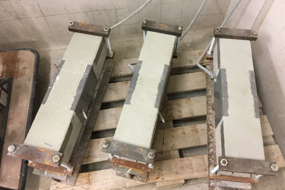 Ziel der Prüfung war die Bewertung der Leistungsfähigkeit unter kombinierter Beanspruchung durch variierende Rissbreiten und dauerhaft rückseitig anstehenden Wasserdruck. Die Versuche erfolgten an Stahlbetonprüfkörpern mit zwei Betonstahlstäben von 6 mm Durchmesser und einer Betondeckung von 35 mm.