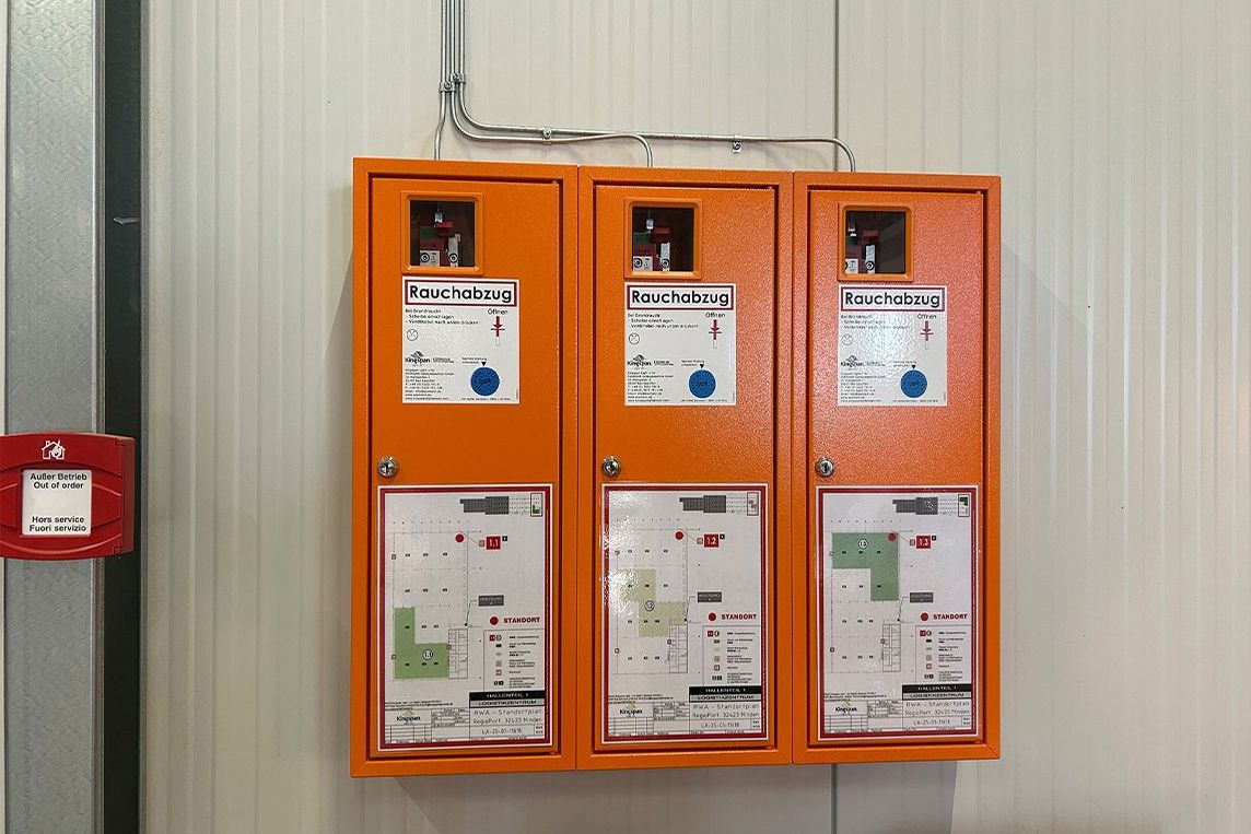 - Entrauchung: NRWG F6 LK (Rauch- und Wärmeabzugsgeräte) + NAS-P Notauslösestationen