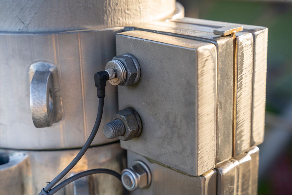 Die SensorBolts messen direkt am Schraubenkopf die Vorspannkraft als zentrale Kenngröße im Stahlbau. Ein weiterer Sensor erfasst die Temperatur, um Umwelteinflüsse zu berücksichtigen. Die Messwerte werden in Kilonewton an ein Gateway im Stadion übertragen und anschließend verschlüsselt in einer Cloud gespeichert. Über ein Dashboard können die Betreiber den Zustand der Befestigungspunkte ortsunabhängig in Echtzeit einsehen.