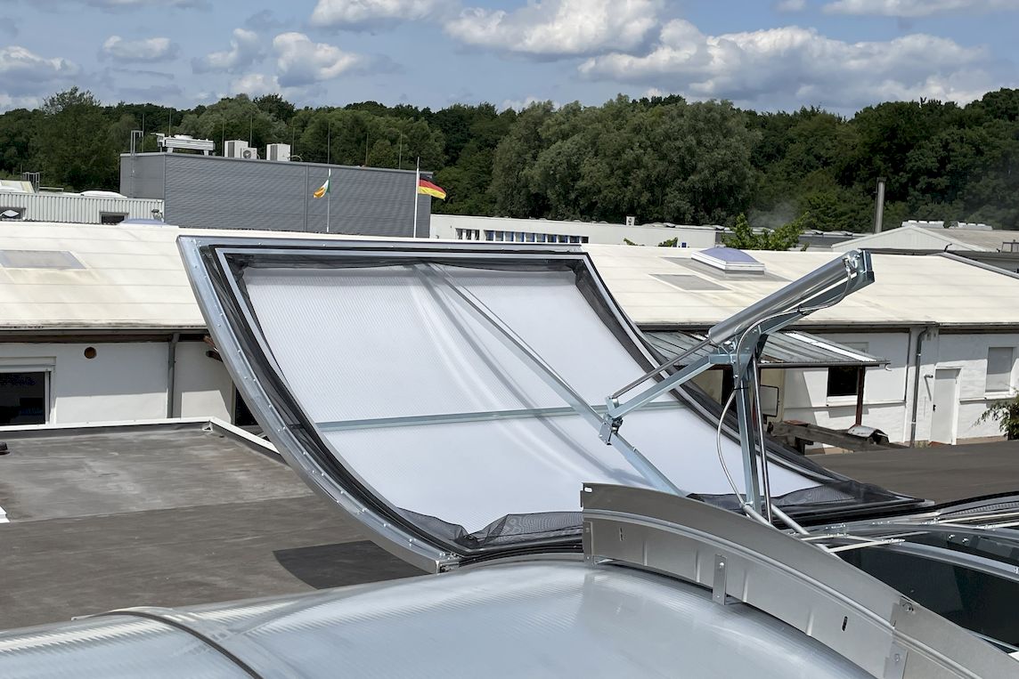 In Lüftungsstellung ermöglicht das System den Luftaustausch, während das Eindringen von Insekten, Vögeln und grobem Schmutz reduziert wird. Angaben zufolge bleiben sowohl die Lichteinfallfläche als auch die Aa-Werte des NRWG unbeeinträchtigt.
