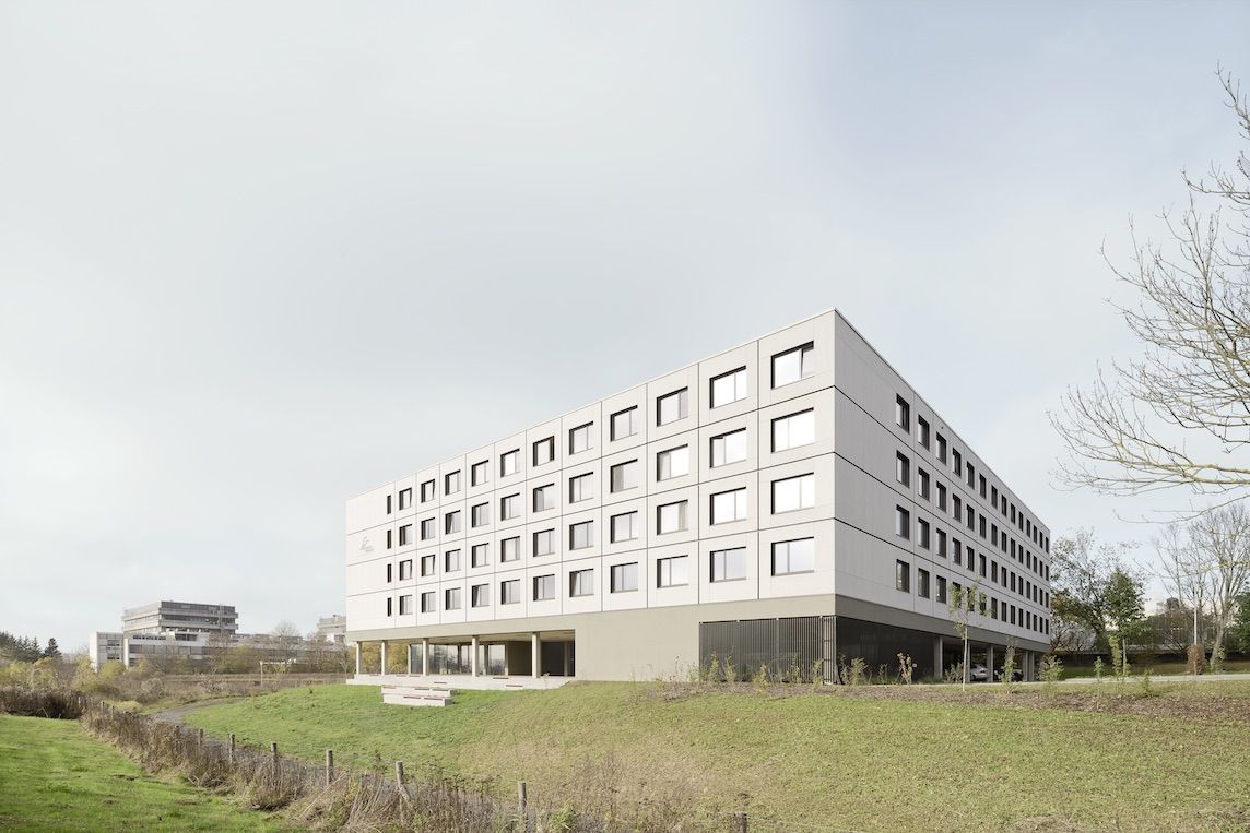 Das Wohnheim zeigt die Potenziale seriellen Bauens im Hochschulkontext. Innerhalb kurzer Zeit entstand ein kompakter Baukörper mit klarer architektonischer Haltung. Die Kombination aus Holzmodulen, Gemeinschaftsflächen und Faserzementfassade verbindet konstruktive Effizienz mit gestalterischer Stringenz.