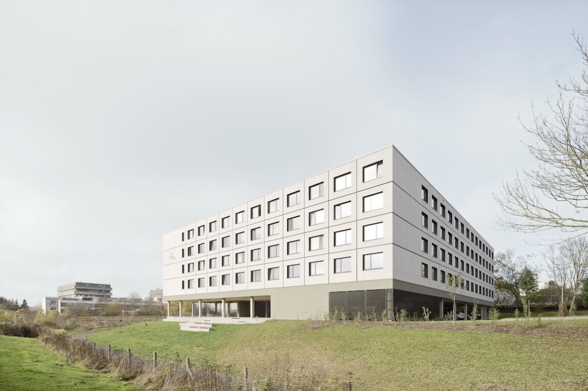 Modulares Studentenwohnheim mit puristischer Faserzementfassade