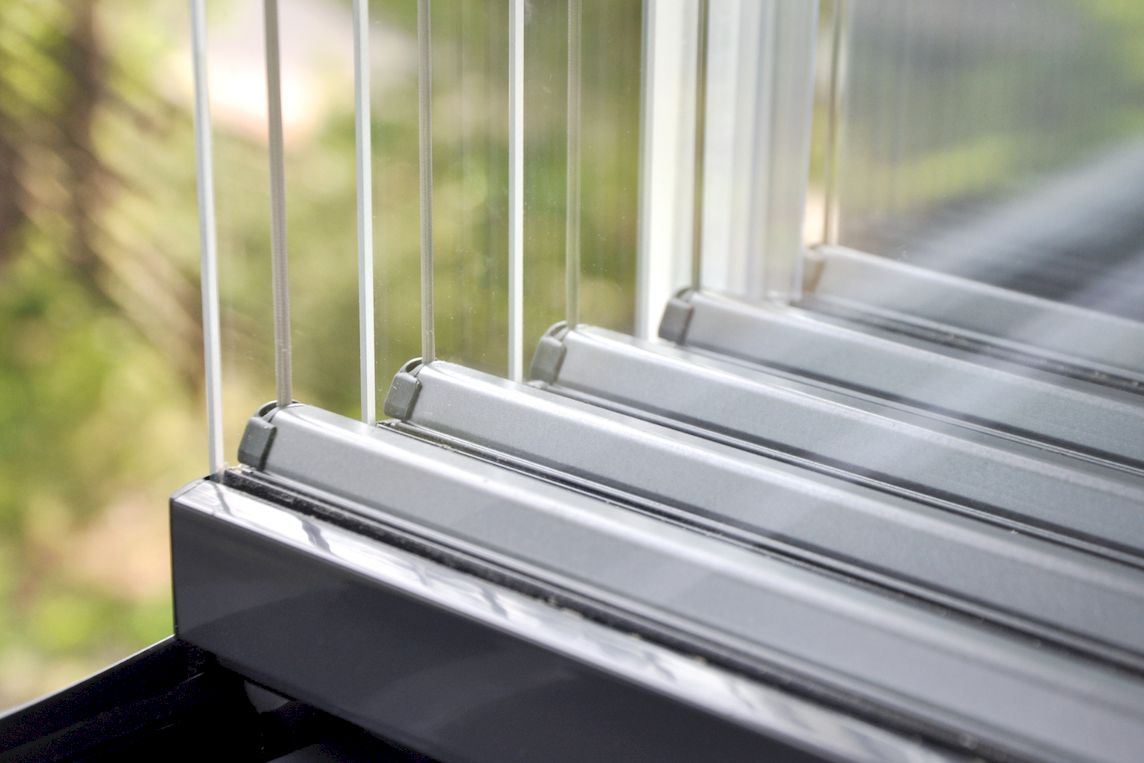 Die rahmenlose Balkonverglasung mit Dreh-/Schiebefunktion kommt ohne vertikale Profile aus und ermöglicht eine weitgehend freie Sicht. Die Verglasung lässt sich flexibel ganz oder teilweise öffnen. Dabei werden die Scheiben einzeln nach innen geschwenkt und seitlich kompakt als Paket geparkt. Je nach Anzahl der Gläser ist auf Kundenwunsch auch die Öffnung der Gläser in beide Richtungen möglich, sodass beispielsweise vier Gläser nach links und vier Gläser nach rechts geschoben und geöffnet werden können.
