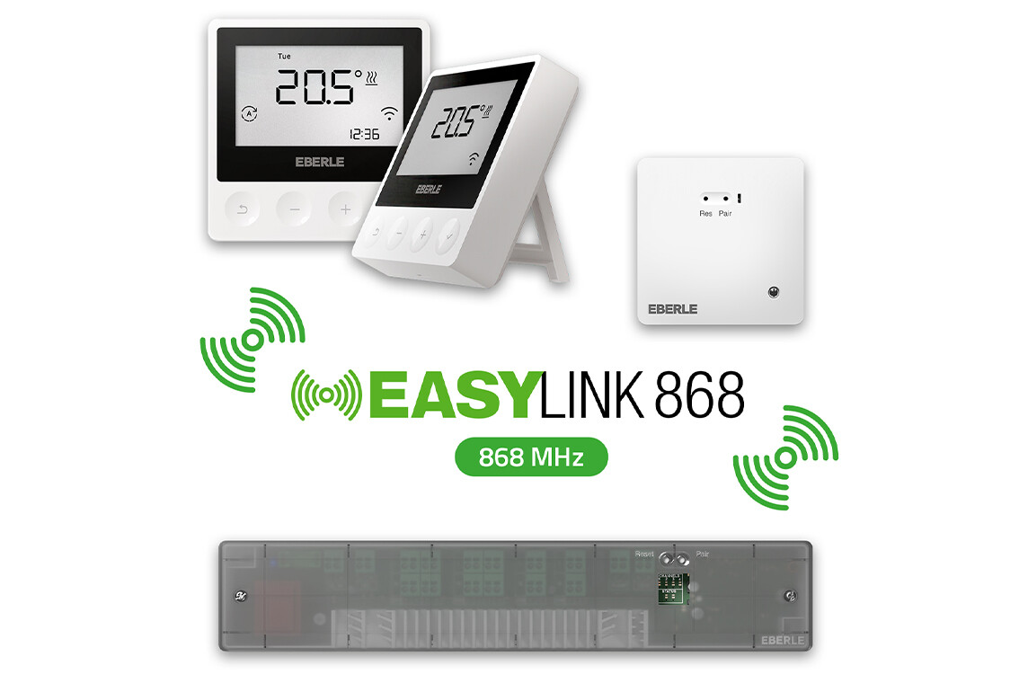 (24.3.2026) Auf der diesjährigen Light+Building in Frankfurt am Main präsentierte Eberle Controls mit Easylink 868 die neue Generation seines etablierten Funksystems. Die Lösung ermöglicht das Nachrüsten einer Heiz- und Kühllösung per Einzelraumregelung – ohne neue Kabelwege oder das Aufstemmen von Wänden. Die Komponenten kommunizieren im 868-MHz-Funkband mit störungsarmer Übertragung und hoher Reichweite.