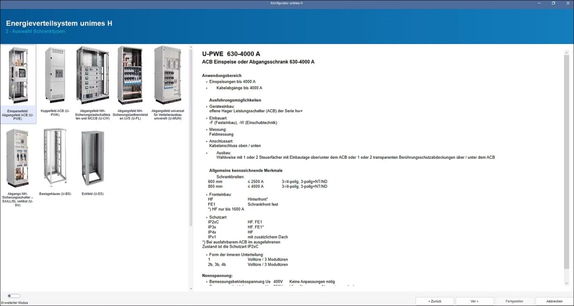 Das Modul ist auf eine schnelle Budgetplanung von Energieverteilungen ausgelegt, indem es die Auswahlmöglichkeiten auf das Wesentliche reduziert. Da sich Schrankgehäuse und Schalter der Reihe hw+ gemeinsam konfigurieren lassen, verkürzt sich auch die Planungszeit erheblich. Das erweist sich vor allem in frühen Planungsphasen als vorteilhaft, weil es eine bedarfsgerechte Vorkalkulation ermöglicht, die Zeit und Ressourcen spart.