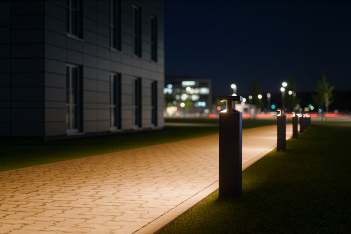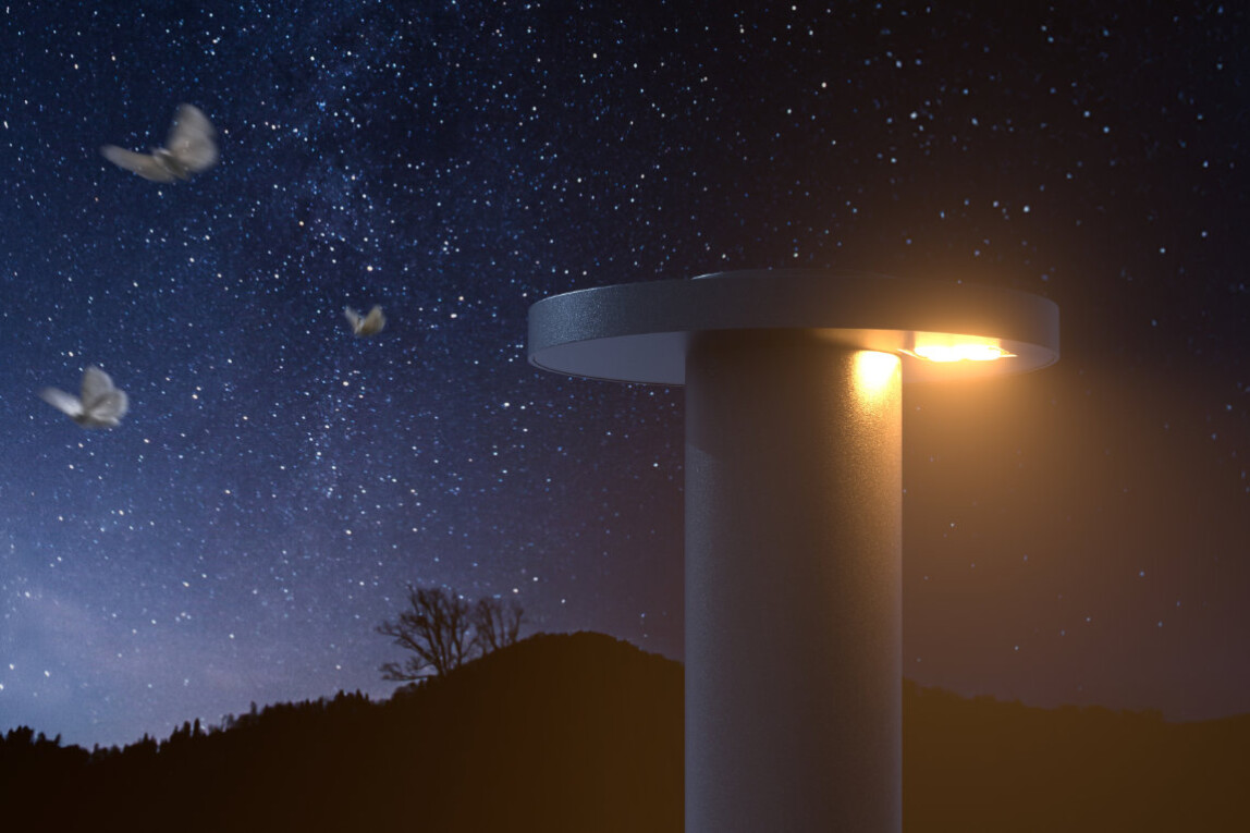 Der Lichtaufsatz Nocto kombiniert Dark-Sky-Technologie mit 180°-Abschattung. Streulicht in angrenzende Wohnräume und Ökosysteme wird so vermieden, der Nachthimmel bleibt dunkel. Dank präziser Linsentechnik ist eine normgerechte Ausleuchtung bei Pollerabständen von bis zu 14 m möglich. Die Lichtfarbe von 2.200 K schont Insekten, der Ulor-Wert liegt bei 0 %.