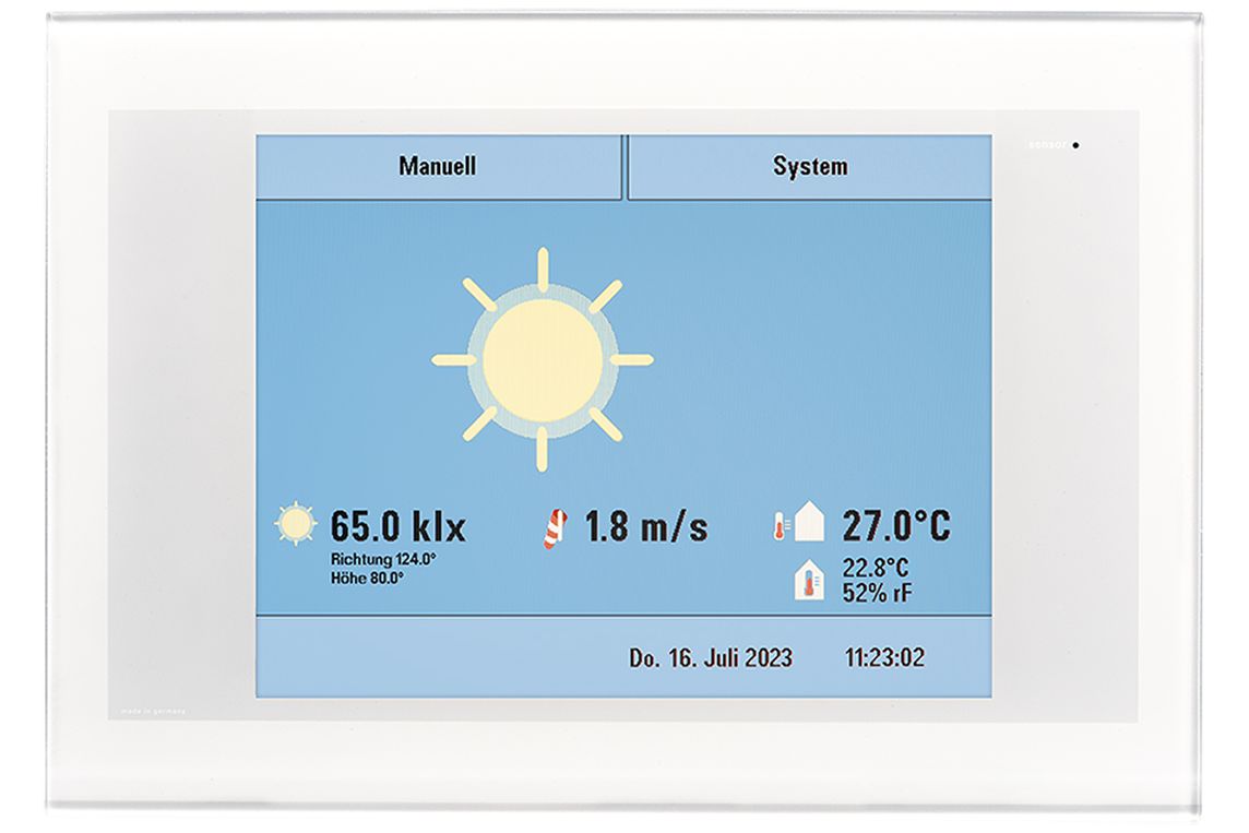Die Gebäudesteuerungen koordinieren Lüftung, Sicht- und Sonnenschutz, Heizung, Klimaanlage und Beleuchtung zu einem aufeinander abgestimmten Gesamtsystem – für ein individuelles Wohlfühlklima bei minimalem Energieeinsatz. WS1 und WS1000 sind in den Varianten „Color”, „Style” und „Connect” erhältlich.