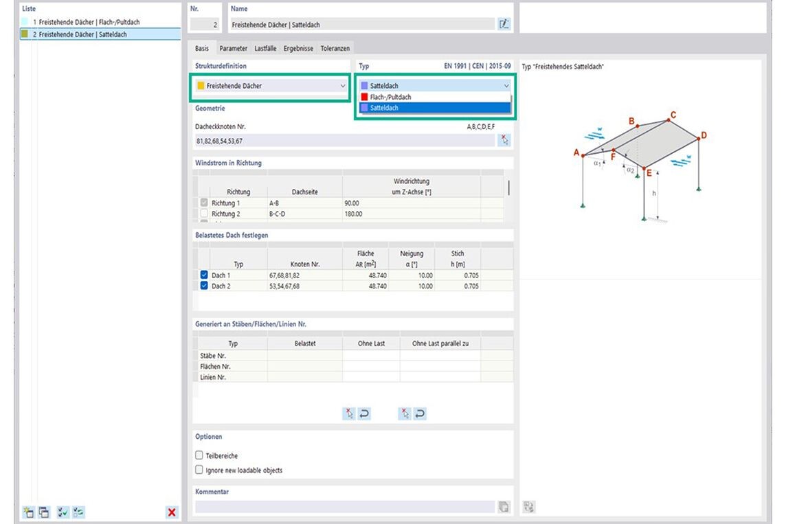 Windlastgenerierung für freistehende Dächer
