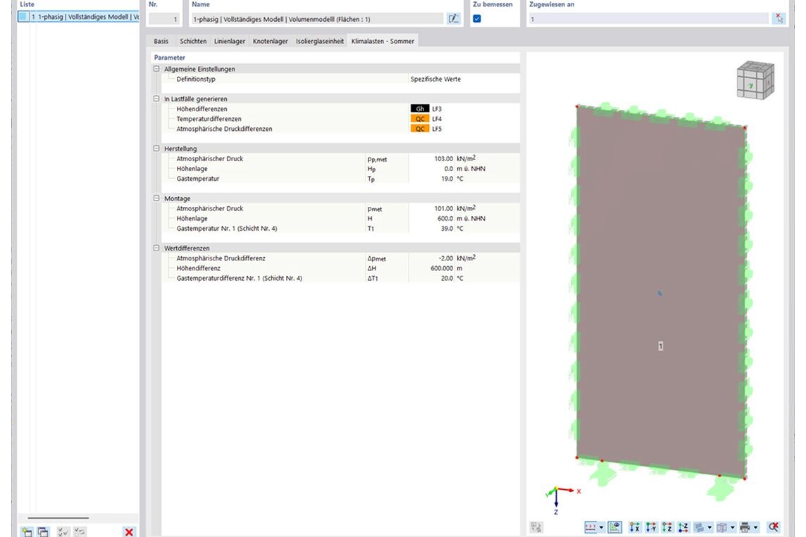 Das Glasbemessungs-Add-On erzeugt Volumenmodelle ebener Flächen aus dem eingegebenen Schichtaufbau. Verbund- und Isolierglaseinheiten mit vollem Schichtverbund lassen sich automatisch generieren und bemessen. Für Isolierglas können klimatische Einwirkungen automatisch angesetzt und in der Kombinatorik berücksichtigt werden.