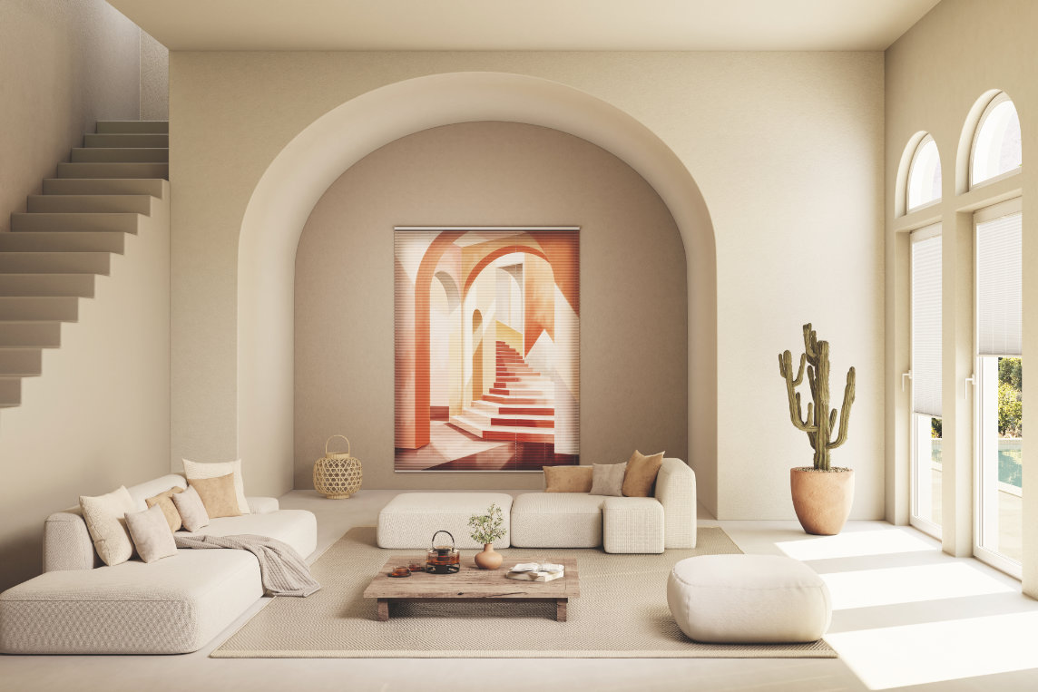 Die Stoffe der beiden Themenbereiche sind miteinander kombinierbar. Die Plissee-Kollektion 2026 ist seit April im Fachhandel verfügbar.