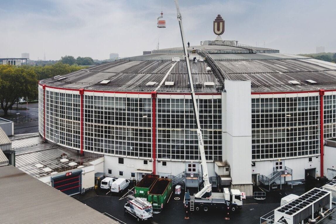 In Kooperation mit dem Dortmunder Dachdeckermeisterbetrieb Bedachungen Sindermann unterstützten Böcker Autokrane AK 48 und AK 36 die Arbeiten an dem markanten Kuppelbau. Die Westfalenhalle wird derzeit schrittweise saniert.