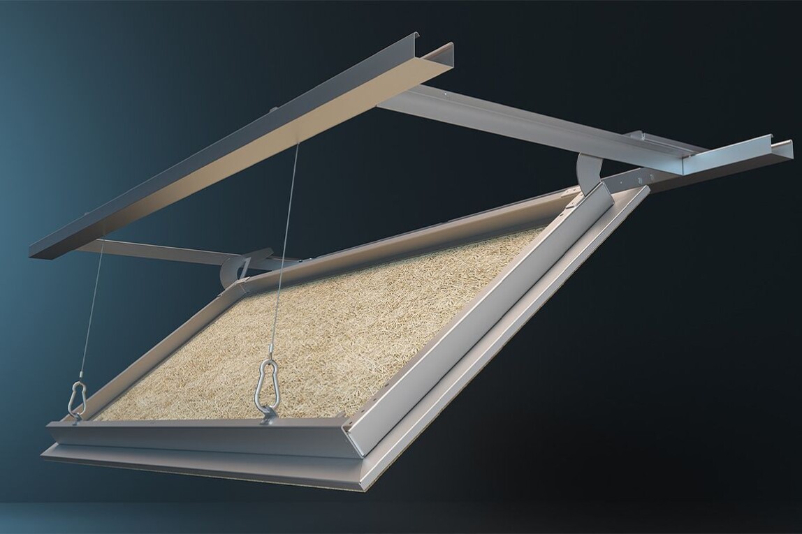 (29.04.2026) Mit der Revisionsklappe FRHW-Akustik bietet Felko Bau-Systeme eine zeitsparende und wirtschaftliche Alternative zu klassischen Serviceklappen, konzipiert für Holzwolle-Akustikdecken. Die Klappe öffnet im 90°-Winkel senkrecht nach unten, ohne den Öffnungsquerschnitt des Rahmens nennenswert einzuschränken.