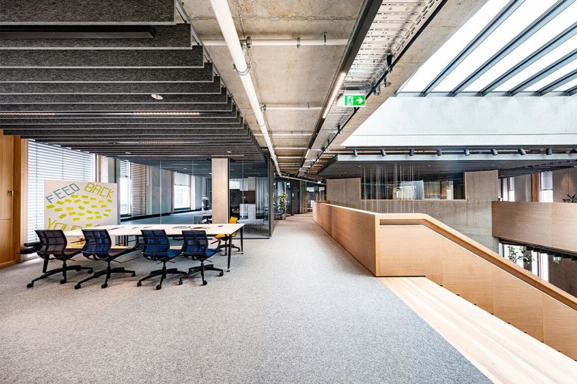 Ergänzt wird das Angebot durch Büro-, Seminar- und Konferenzflächen, Gastronomie, einen IT Service Point, einen künftigen Health-Bereich sowie verschiedene Außenbereiche. Im Rahmen eines Flex-Office-Konzepts konnten Mitarbeiter bereits in der Planung aus 24 Büromodulen wählen.